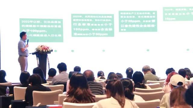 杭州唯铂莱销售总监 韩何峰从美白、抗衰、修护、控油抑痘等多角度阐述了烟酰胺何以成为护肤“万金油”。针对容易引起皮肤过敏的副产物烟酸,韩总也展示了唯铂莱精益求精的工艺升级标准。