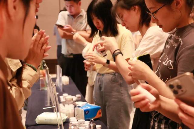 百好博特别展示了以唯铂莱“新一代烟酰胺”为主要成分的复配产品,吸引众多观众驻足,体验样品、互动交流。